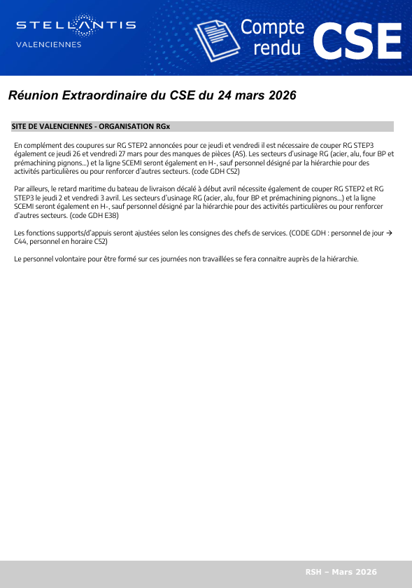 Compte rendu CSE extra du 24 mars 2026 à 15h30