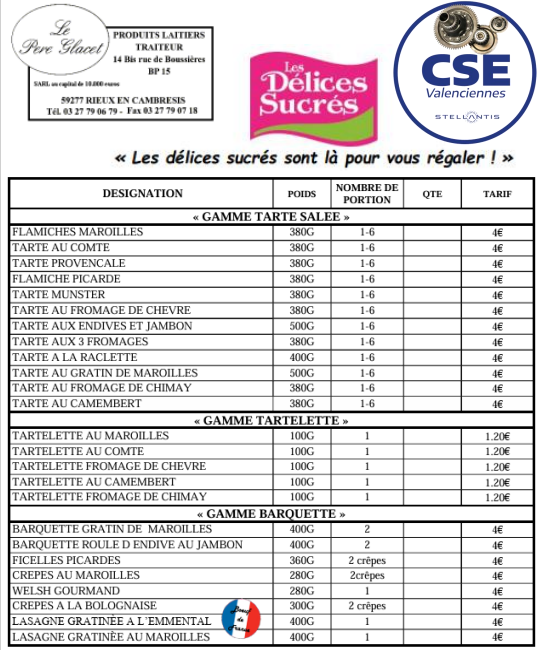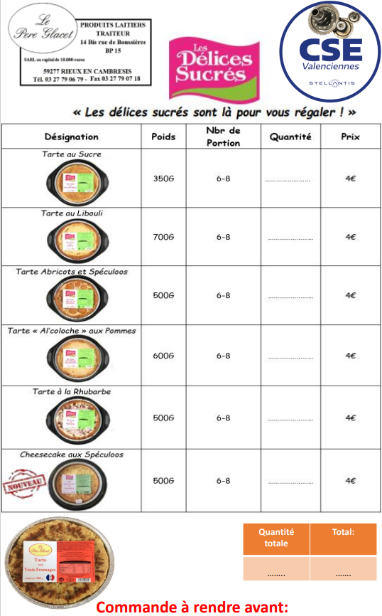Nouveau bon de commande Père Glacet pour les tartes, flamiches, tartelettes: