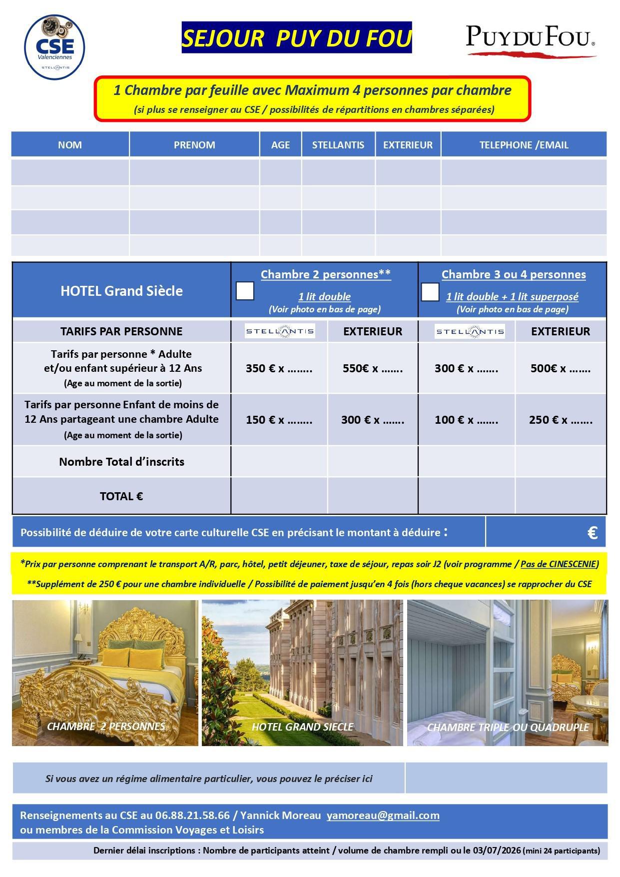 3 jours au Puy Du Fou, les 25,26 et 27 septembre 2026.